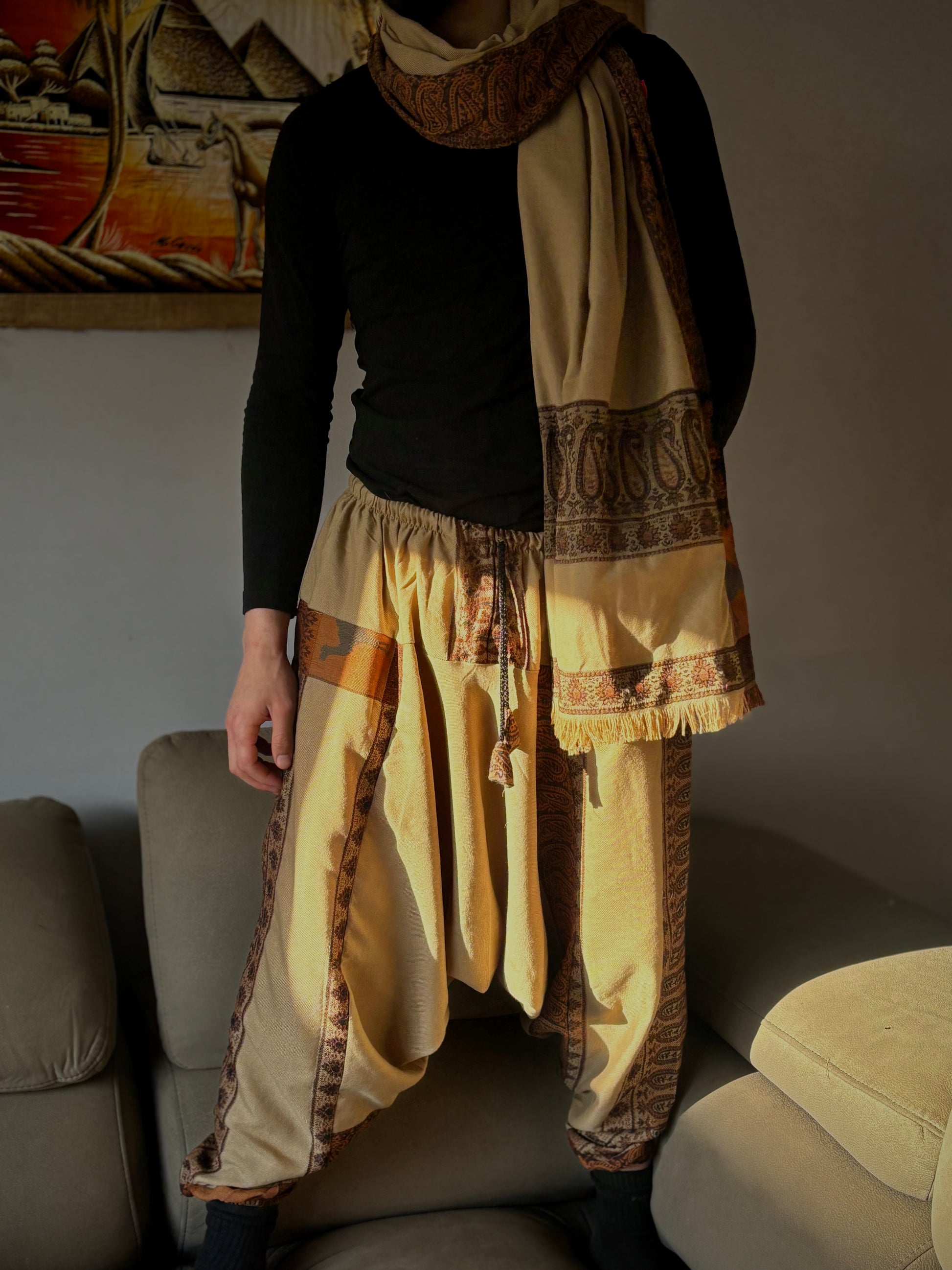 Egyptian ethnic shalvar with Scarf (Aladin pants with shal\scarf) made of very fine